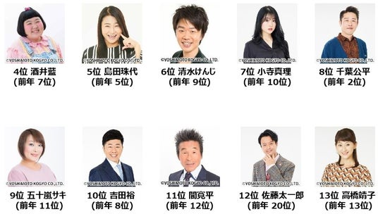 そして65周年の「吉本新喜劇の顔」島田珠代も5位にランクイン!