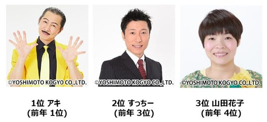 1位は、昨年の総選挙でも1位に輝き3連覇を目指す“アキ”現座長、 2位は、 「すち子」で不動の人気を誇る“すっちー”、3位には山田花子。