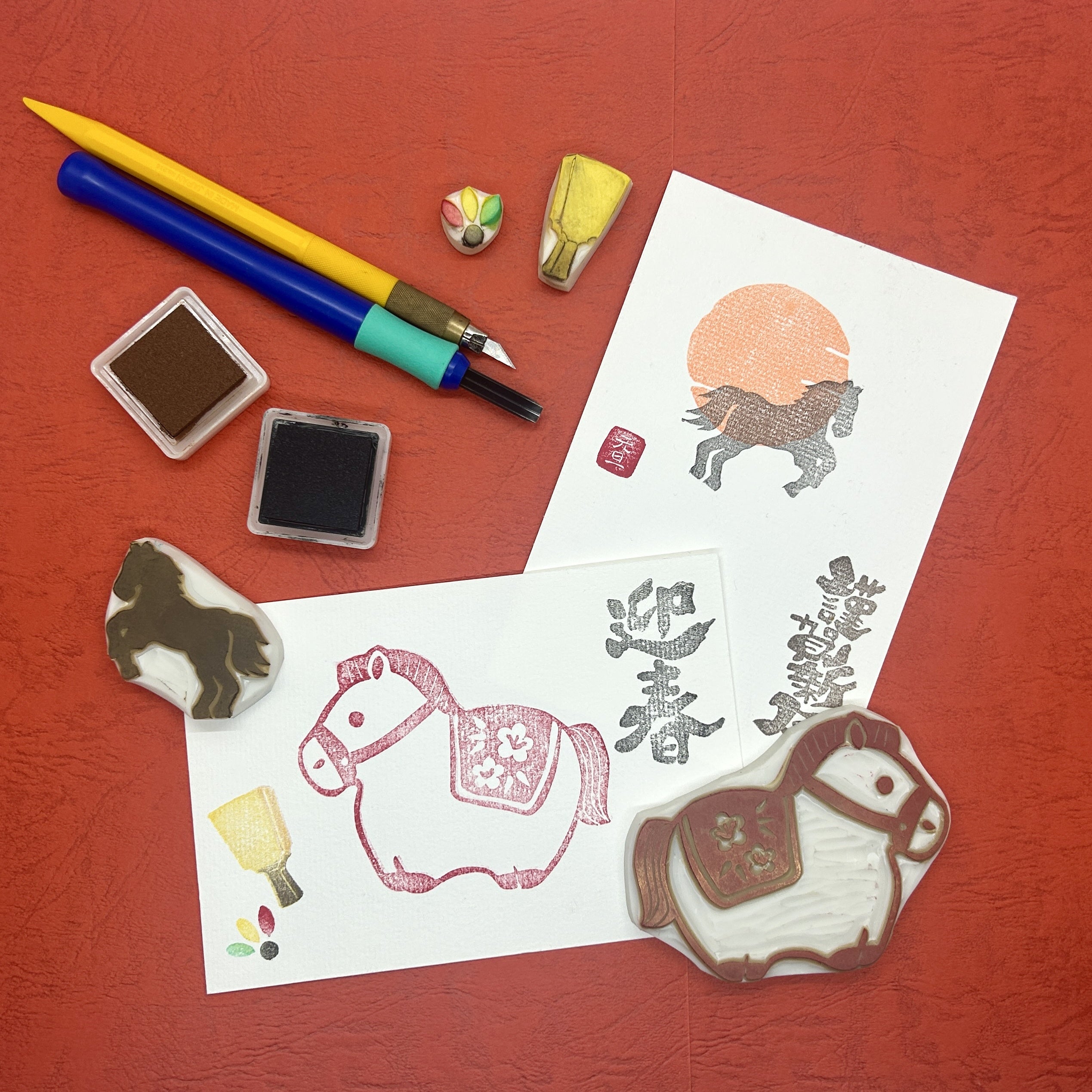 消しゴムはんこで年賀状を作りましょう!