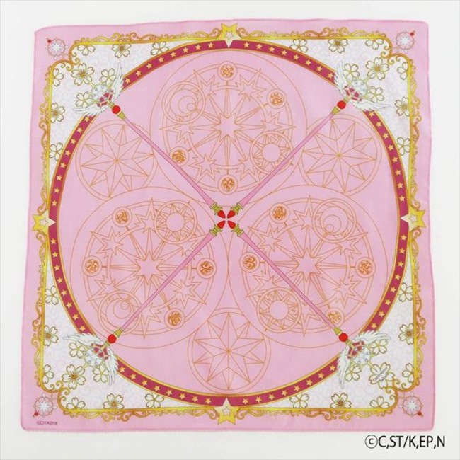 ▼【カードキャプターさくら】プリントハンカチ 夢の杖柄/クリアカード柄/バトルコスチューム柄