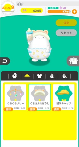 「きせかえ」を通してキャラクターは自由に見た目をカスタマイズすることが可能です。