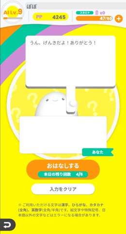 「おはなし」するとAI Lv.が上がり、できるお仕事や会話内容が進化します。