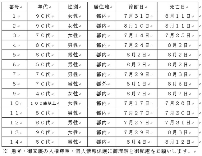 2022-08-16 東京都 新型コロナウイルスに関連した患者の死亡について Tweet ~新型コロナウイルスに関連した東京都からのお知らせ~ 都内で新型コロナウイルスに感染した方が死亡されましたのでお知らせします。お亡くなりになった方のご冥福をお祈り申し上げます。 企業プレスリリース詳細へ PR TIMESトップへ 公式ツイッター Follow @Straightpress 最新情報をTwitterで受け取ろう! 公式フェイスブックページ 最新情報をFacebookで受け取ろう! 前の記事 一覧へ戻る 次の記事