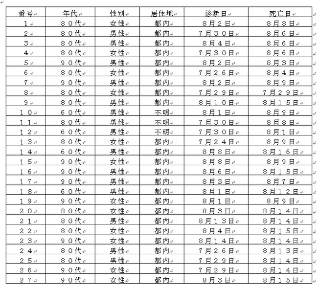 都内で新型コロナウイルスに感染した方が死亡されましたのでお知らせします。