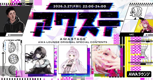 AWA株式会社(本社:東京都港区、代表取締役CEO:冨樫晃己)が運営する、サブスクリプション型(定額制)音楽ストリーミングサービス「AWA(アワ)」は、2026年3月27日(金) 22:00より、無料で誰でも参加できるオンライン空間「ラウンジ」で、ネットシーンを中心とした注目アーティストなどを毎回ゲストに招き、有識者であるMCとともにシーンの次のステージを切り開く番組「AWAステージ(通称:アワステ)」の第71回を開催いたします。