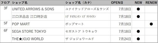 6Fには『ジョジョの奇妙な冒険』世界初の体験型公式ショップ「THE★JOJO WORLD」と65年の歴史の中で豊富なIPを生み出してきたセガによる国内初となる旗艦店「SEGA STORE TOKYO」がいよいよオープンし、6Fの新しいメンバーがすべて揃いました。