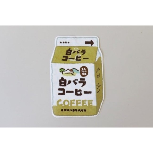 白バラ牛乳500mlと白バラコーヒー500mlの手描き風デザインのステッカーです。