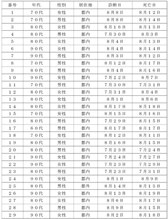 都内で新型コロナウイルスに感染した方が死亡されましたのでお知らせします。