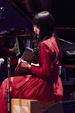 MonaとHinaのベーシックな2人編成。いつものようにHinaがピアノ以外のさまざまな楽器(コンサーティーナ、カホン、鍵盤ハーモニカ、シンセサイザーなど)でアレンジを加えつつも、実験的な演奏よりは、あくまで楽曲の情緒を重んじた“歌”中心の構成になっていた。2人のハーモニーは間違いなくKitriの武器だが、ここまでその心地よさに浸り続けられるステージはむしろ新鮮だ。そして、東京文化会館という天井の高い神秘的な空間も相まって、一音一音がとても雄弁に楽曲のストーリーを表現していたように思う。Monaが約4年前にこの会場に足を運び、「いつか自分たちもここで演奏してみたい」と思ったことが決め手になったそうだが、相変わらずKitriは会場選びにも抜かりがない。