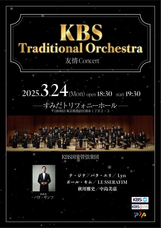 この度、韓国のテレビ局KBS主催による『KBS Traditional Orchestra 「友情Concert」』 が、2025年3月24日(月)に東京・すみだトリフォニーホールにて開催されることが決定した。