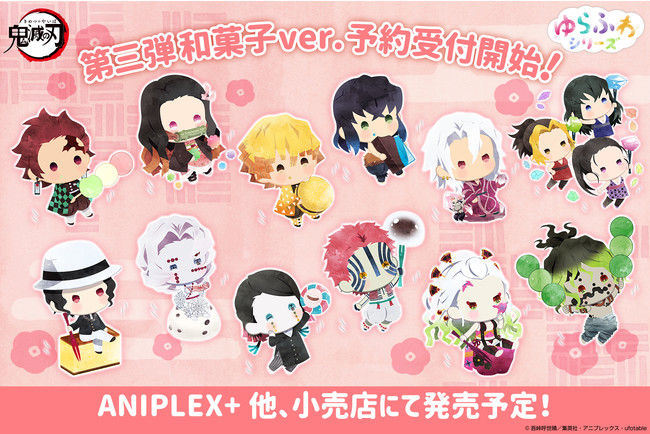 株式会社アニプレックスより展開中のデフォルメグッズシリーズ「ゆらふわシリーズ」より第3弾『和菓子ver.』の全イラストを解禁、1月17日(月)より予約受付を開始いたしました。