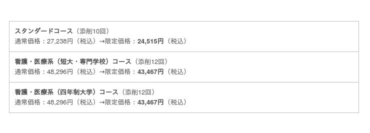 過去問添削つき講座や、まとめて対策ができて、さらにお得な価格のセット講座もあります。