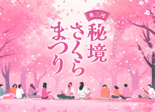 お酒、食事、空気、仲間……街中にはない桜と贅沢な時間を楽しむ「奥三河 秘境さくらまつり」。桜と青空の下、家族や仲間とともに楽しい1日を過ごす「桜」と「食」の素敵な空間を、参加者のみなさんで作りましょう。