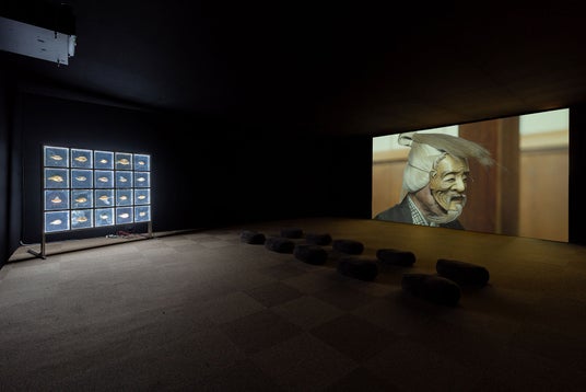 (左)堆肥国家 (右)射留魔川 2024年 展示風景 写真:Courtesy of ACK, photo by Takuya Matsumi