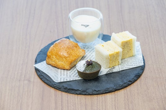 中段には、「よもぎときなこのフィナンシェ」をご用意。春の始まりを象徴する鮮やかな若草色のよもぎのほろ苦さと、きな粉のやさしい甘味が絶妙にマッチします。 春らしい色合いの黄色を演出する「たまごサンド」は、黄身の濃厚さが感じられる優しい味付けに仕上げました。