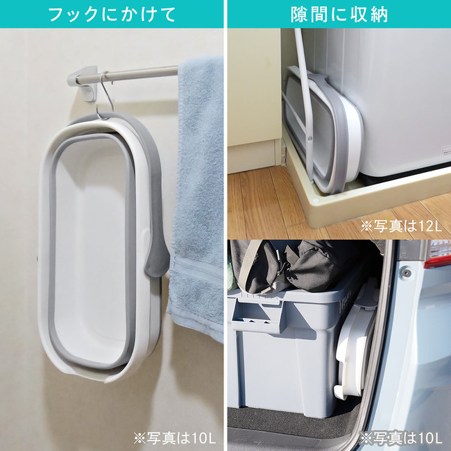 本製品は、必要なときだけサッと広げて使える折りたたみバケツです。