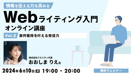 株式会社クリーク・アンド・リバー社(C&R社)は6月10日(月)、ライターをめざしている方やWebライティングの基本を知りたいとお考えの方、フリーランスライターの方などを対象に、「情報を伝える力を高める Webライティング入門オンライン講座Vol.2 ~案件獲得を叶える発信力~」(参加費無料)を開催します。