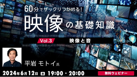 株式会社クリーク・アンド・リバー社(C&R社)は6月12日(水)、映像の基本を学びたいクリエイターの方や映像業界をめざす学生の方などを対象に、無料のオンラインセミナー「60分でザックリつかめる!映像の基礎知識 Vol. 3 ~映像と音~」を開催します。