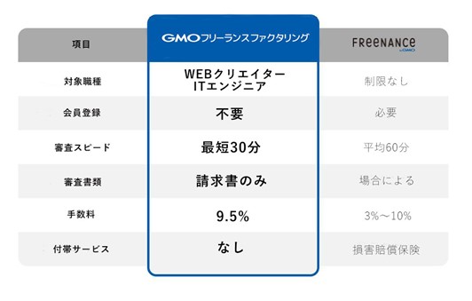 もちろん、対象職種であれば、既存の「FREENANCE byGMO」会員も「GMOフリーランスファクタリング」を利用することが可能です。これにより、スピードを重視する場合や単発での利用など、状況に応じた使い分けもできるようになりました。