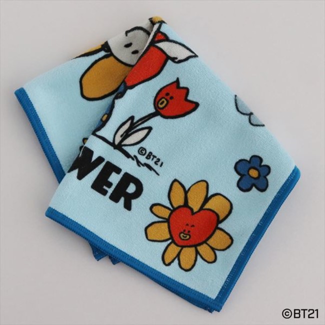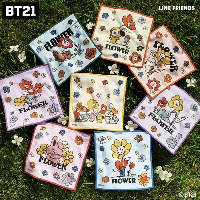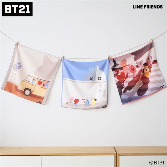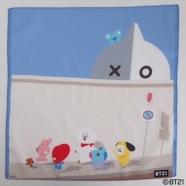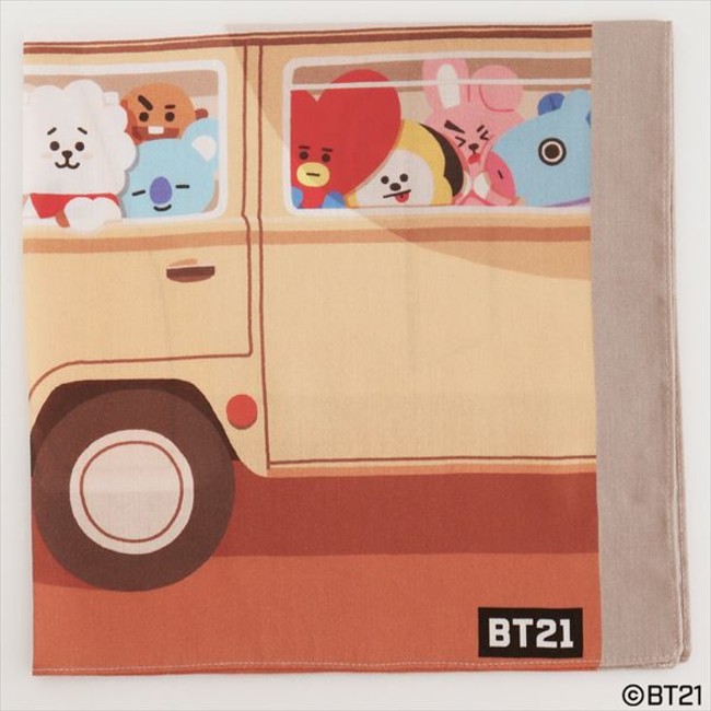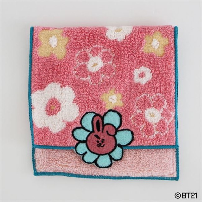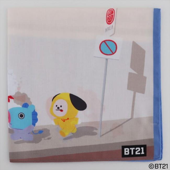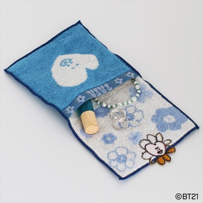 「BT21」のアップリケ刺繍がワンポイントのポケットハンカチ。