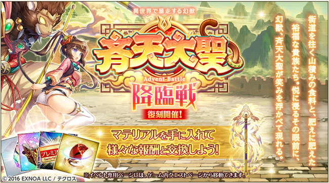 合同会社EXNOA(本社:東京都港区、CEO:村中 悠介、URL:https://games.dmm.com/)が運営するDMM GAMESにおいて『神姫PROJECT A』は、本日、「アンダカ」はSSR昇格、「ティターニア」は新衣装で再登場したことを発表した。更にSSR幻獣「斉天大聖」が手に入る降臨戦イベントも復刻開催している。
