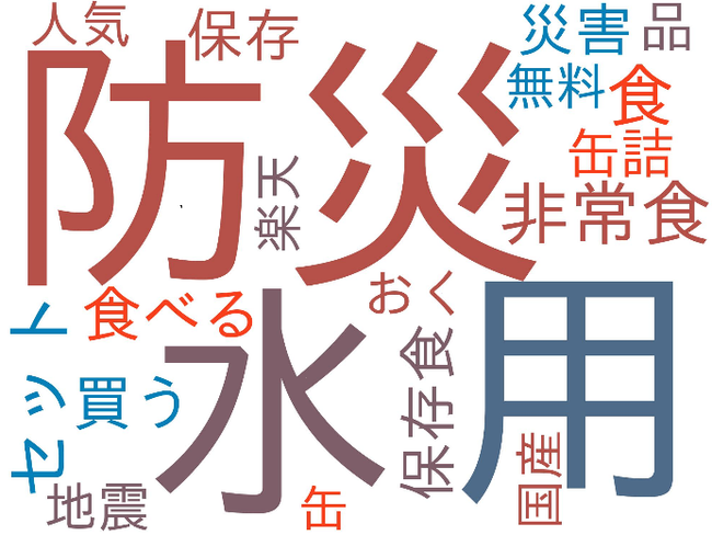 「防災」「セット」などの用語も引き続き認められるが、日用品への言及はなかった。