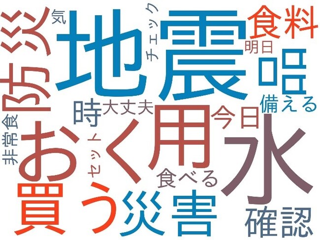 「水」や「非常食」、「食料」への言及が多くなっている。