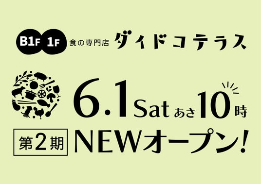 中野マルイ(株式会社丸井、本社:東京都中野区、代表取締役社長:青野 真博)B1F・1Fで展開する、毎日の食卓を彩る食の専門店「ダイドコテラス」が6月1日(土)に第2期NEWオープンをいたします。
