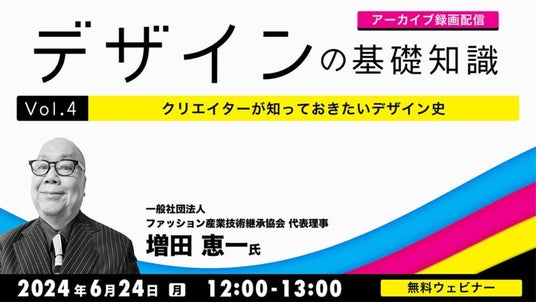 株式会社クリーク・アンド・リバー社(C&R社)は6月24日(月)、今年2月に開催したオンラインセミナー「デザインの基礎知識 Vol.4 クリエイターが知っておきたいデザイン史」のアーカイブ映像を無料配信します。本セミナーは、Webや映像、ゲーム、広告・出版、ファッション、インテリアなどでデザイナーとしてご活躍されている方を対象とした内容です。