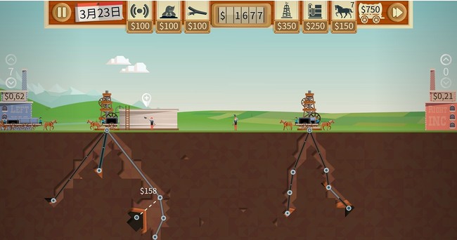 石油起業家としての成功を目指しながら、オイルラッシュやライバルとの競合を楽しみましょう。石油を掘削しそれを売ることで、町もまた大きく成長していきます。