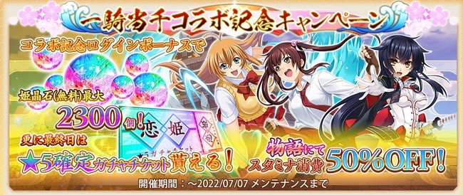 期間中、物語などストーリー閲覧における消費スタミナが50%になるキャンペーンが開催!