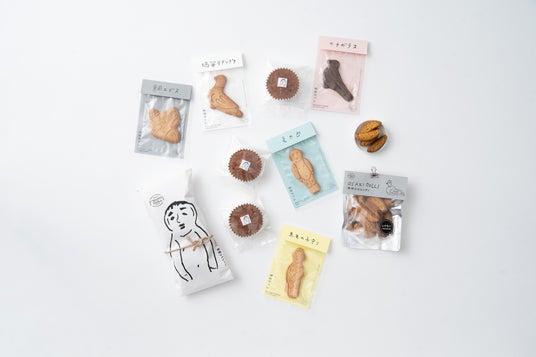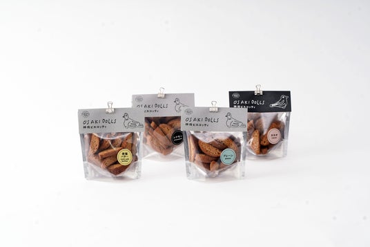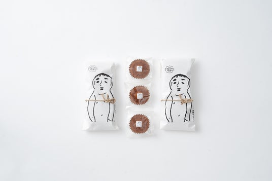 尾崎人形は、神埼の地で長く親しまれてきた土人形で、素朴な表情と縁起物としての性格をあわせ持つ存在です。その意匠や背景を菓子の世界観に取り入れ、神埼の新しいお土産菓子として「OSAKI DOLLS」シリーズを企画しました。思わず笑みがこぼれるような、ユニークでめでたい菓子は、贈りものやお土産としても楽しめるシリーズです。