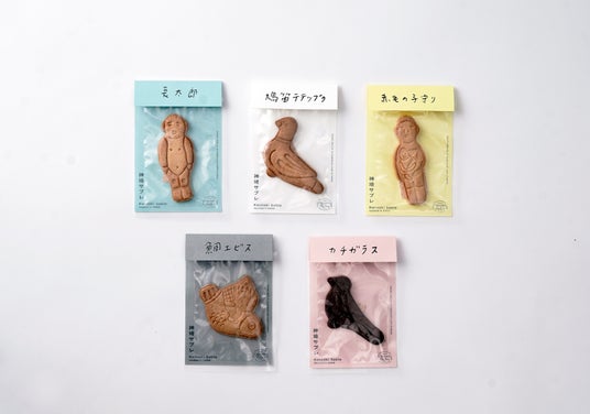 尾崎人形の「長太郎」「鳩笛テテップウ」などをモチーフにした、脱力系の縁起サブレです。