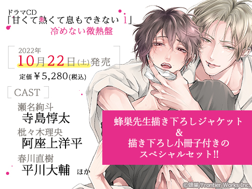 蜂巣先生原作のBLドラマCD「甘くて熱くて息もできない 1」冷めない微熱盤の
