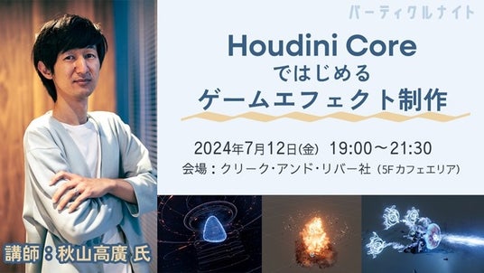 株式会社クリーク・アンド・リバー社(C&R社)は7月12日(金)、ゲーム開発におけるエフェクトデザイナーの方を対象に「パーティクルナイト Houdini Coreではじめるゲームエフェクト制作」を開催します。