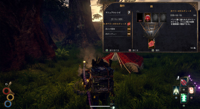 こういった様々なステータスを管理し、サバイバルしながらオープンワールドを冒険していくのがこのゲームの魅力の一つです。食べ物などはそのまま食べても効果はありますが、マイナスステータスもかかってしまう場合もあります。そのため、ちゃんと調理をして食べることをお勧めします。このように『Outward』はかなりリアリティのあるRPGゲームなのです。