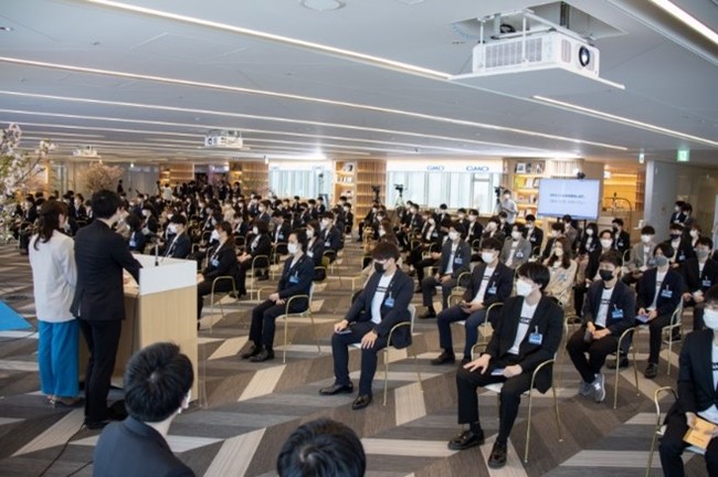 なお、GMOインターネットグループは、2020年1月から、全国に先駆けて全面リモートワークへ切り替え、2020年度、2021年度の入社式は全面オンラインでしたが、この度3年ぶりに新卒パートナーが実際に顔をあわせる対面形式での開催といたしました。
