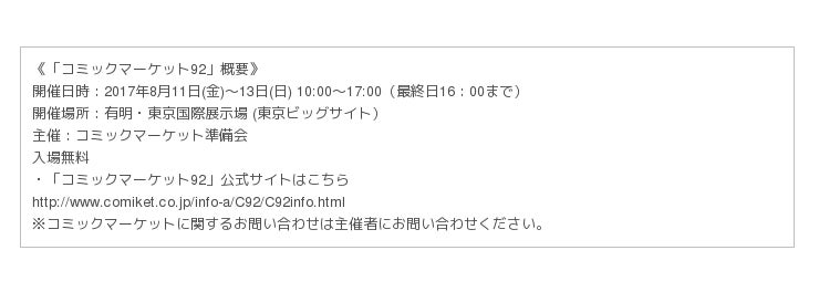 ・「コミックマーケット92」キャラアニ物販情報はこちら