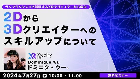 株式会社クリーク・アンド・リバー社(C&R社)は7月27日(土)、XR(AR/VR/MR)業界をめざすデザイナーの方を対象に、無料のオンラインセミナー「サンフランシスコで活躍する XRクリエイターから学ぶ ~2Dから3Dクリエイターへのスキルアップについて~」を開催します。なお、本セミナーは、全編英語で行いますが、同時通訳を通して日本語でお聞きいただくことも可能です。