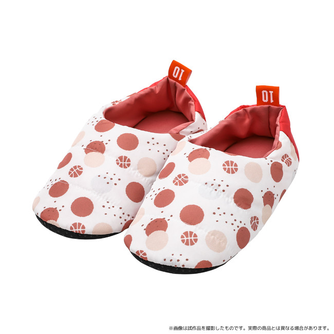 踵まですっぽり収まるシューズ型。中綿入りで、冷房で冷える夏から足先の冷える冬までばっちり対応!キャラクターのイメージカラーを基調とし、ユニフォームをイメージしたカラーも織り交ぜたやさしくポップなデザインにも注目!