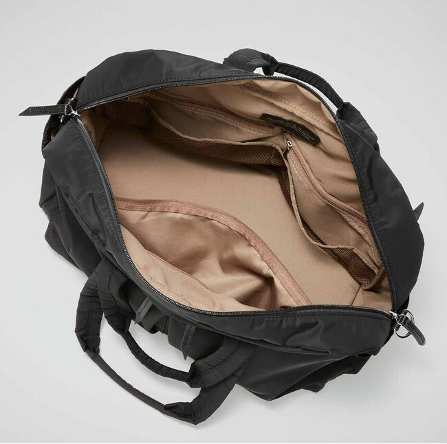 イラストレーターの進藤やす子さんとつくった軽量でどんな服装にも合う機能的なトラベルボストンバッグです。手持ち、肩がけ、斜めがけの3通りの持ち方ができます。旅行や出張に最適です。