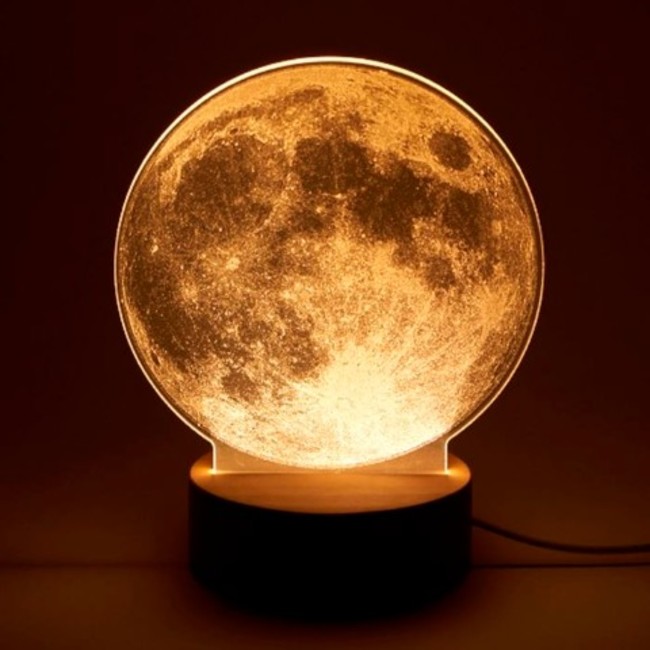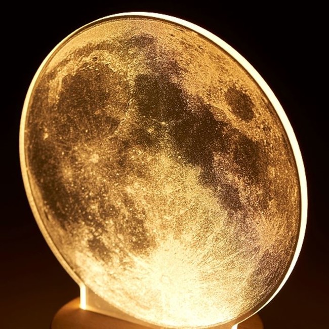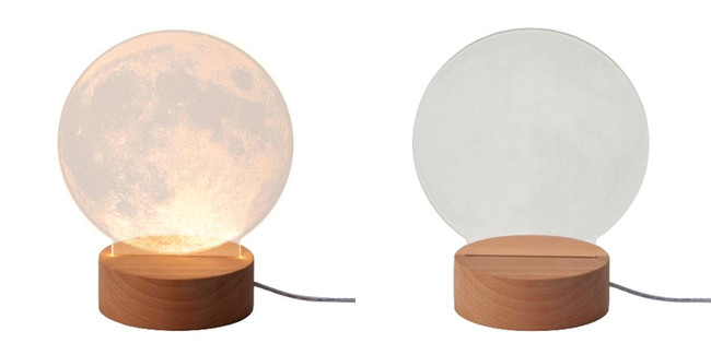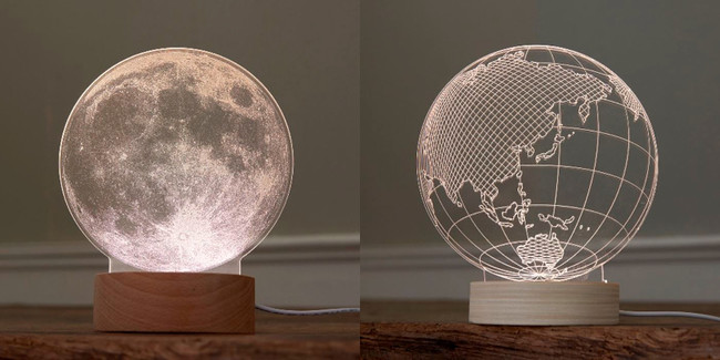 アクリルに写しだされた温白色の惑星がまるで浮いているみたいに見えるLEDライト。