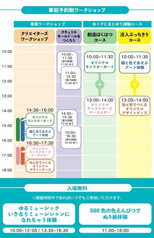 ・事前予約制のワークショップは先着順のため定員に達した場合、応募を締め切らせていただきます。