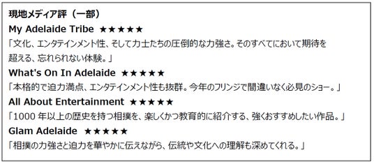 今回の成果は、日本の伝統文化をベースに「学び」と「エンタテインメント」の両面から体験できる本公演の表現が、「Adelaide Fringe」という国際的な舞台において海外の観客やメディアに広く受け入れられ、高い評価と動員という形で、日本発エンタテインメントの海外における可能性を示す結果となりました。今後は、本公演で得た成果と知見をもとに、さらなる海外展開を視野に入れながら、日本文化の魅力をより多くの方に届けてまいります。