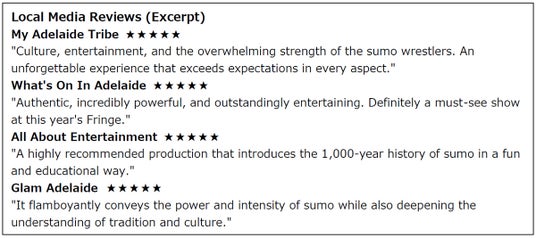"The Sumo Show HIRAKUZA" received numerous 5-star ratings from local media, as well as high praise from attendees.