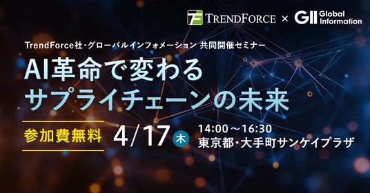 市場調査レポートを販売する株式会社グローバルインフォメーションは台湾を本拠とする提携調査会社、TrendForce(トレンドフォース)社と共同で無料セミナー「AI革命で変わるサプライチェーンの未来」を4月17日に開催いたします。