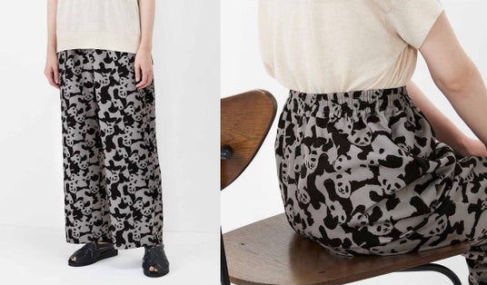 【NEW】IEDIT[イディット] 進藤やす子さんコラボ 幾何学パンダ柄が楽しい! また上深め大人のプリントワイドパンツ