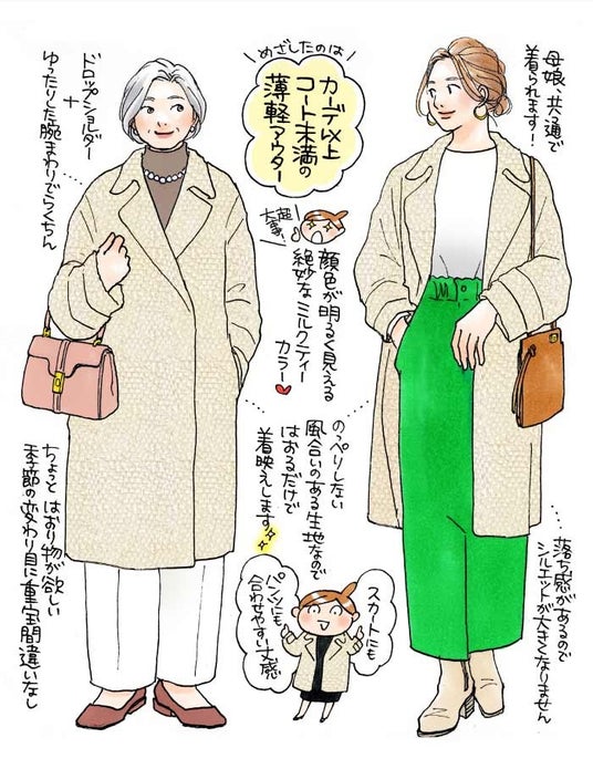 「歳だから、何を着ればいいかわからない」始まりは、母のその一言でした。昔はおしゃれだったのに、「今では何を着ればいいかわからない」という母。いつも私の服を見て「それいいわね」と言うので、「私も母も素敵に着られる服があれば」と思っていたんです。そこで考えたのが、さっとはおるだけでコーデも気分も上がる"これさえあれば"はコート!華やかな生地が着映えして、きちんと感もOK。ほどよい丈感で着やすいおしゃれコートができました。from 進藤やす子