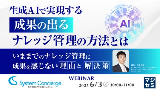 マジセミ株式会社は「生成AIで実現する「成果の出る」ナレッジ管理の方法とは」というテーマのウェビナーを開催します。
