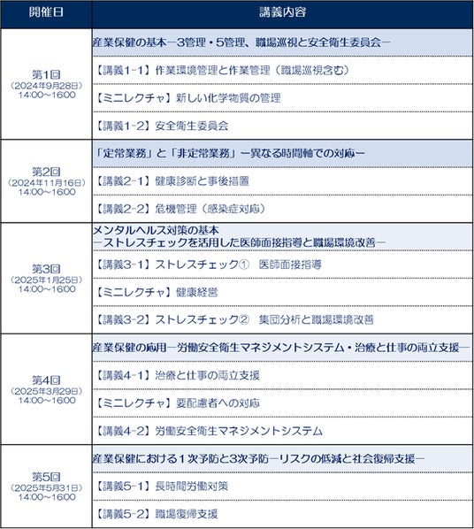 帝京大院公衆衛生学の福田教授、アッシュ・コンサルティングサービスの鈴木代表に加え、産業医の心強いパートナーとして保健師としても活躍されている株式会社PONO代表の杉本講師を新たにお迎えし、女性視点や保健師目線での充実した講義をお届けします。最新の健康経営などの講義も行います。